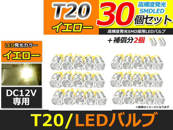 メール便送料無料 高輝度 SAMSUNG LED T20 シングル 5630SMD+CREE 30個 +2保証 アンバー 黄 サムスン ウィンカー