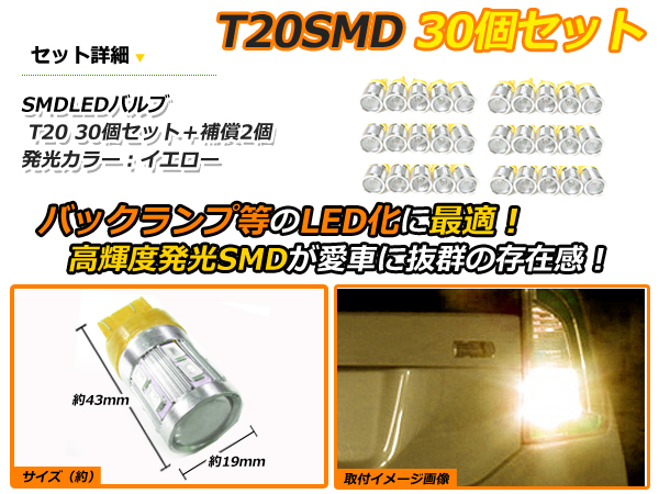 Original Japanese name: | メール便送料無料 高輝度 SAMSUNG LED T20 シングル 5630SMD+CREE 30個 +2保証 アンバー 黄 サムスン ウィンカー |