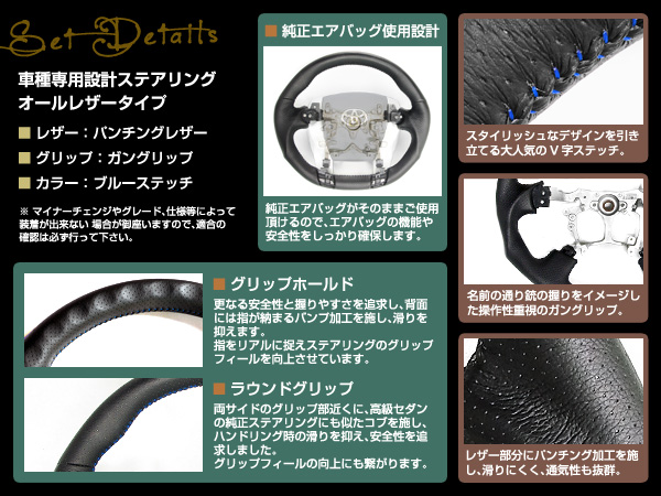 Original Japanese name: | プリウス ZVW30 ガングリップ 青糸 パンチングレザー H21.5- |