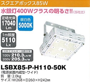 C1【東定#241指051012-7】日動 スクエアボックス85W LSBX85-P-H110-50K 質量2.0Kg W268XD260XH242m