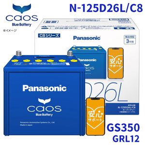 GS350 GRL12 レクサス バッテリー N-125D26L/C8 パナソニック caos カオス ブルーバッテリー 安心サポート 充電制御車対応
