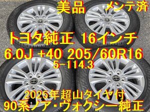 205/60R16インチ 6.0J +40 中古美品 深溝 2025年タイヤ付 新型 ヴォクシー 新型 ノア 90系 流用→ 80系の純正ワイルド野郎