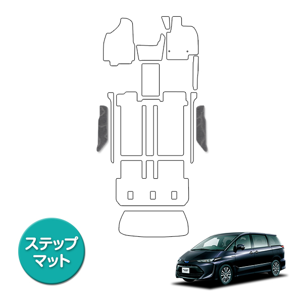 【日本製】トヨタ エスティマ 50系 ステップ マット フロアマット カーマット 後部座席用 左右 2P セット 汚れ防止 グレー 灰 柄