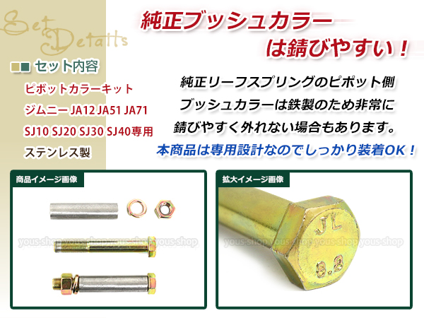 SJ10 SJ20 SJ30 SJ40 JA11 JA51 JA71 ジムニー ピボットカラーキット 2本セット ステンレス サスペンション フロント リア カスタム 修理