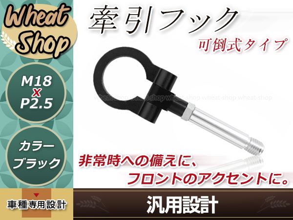 GE6 GE7 GE8 GE9 フィット M18×P2.5 ブラック 牽引フック 折りたたみ式 けん引フック レスキュー トーイングフック アルミ 脱着式 可倒式