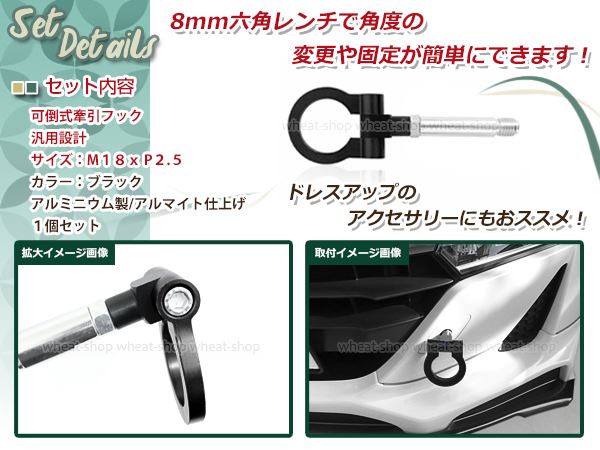 Original Japanese name: | GE6 GE7 GE8 GE9 フィット M18×P2.5 ブラック 牽引フック 折りたたみ式 けん引フック レスキュー トーイングフック アルミ 脱着式 可倒式 |