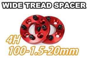 イスト 60系 ワイトレ 4H 2枚組 PCD100-1.5 20mm ワイドトレッドスペーサー (赤)