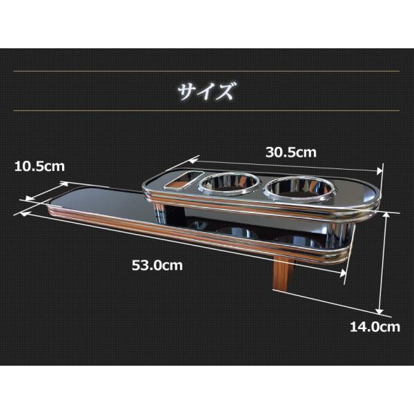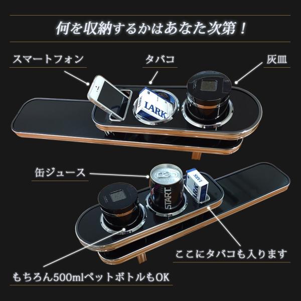 ラグジュアリー感が格段にアップする、質感あふれるドリンクホルダー付きコンソールテーブル。しかも取り付けは純正コンソールに乗せてテープで固定するだけ!