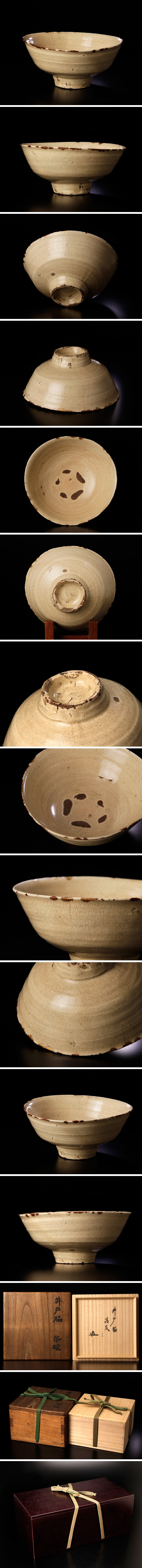 井戸脇は高麗茶碗の一種で、別種ながら井戸茶碗に似ていることから付けられた名称であり、口の開いたものが多く、本作もそのような傾向を持つ。 見込と畳付に目跡が残り、わびた表情をたたえています。 ★商品は鵬雲斎書付の作品である事を保証致します。 |