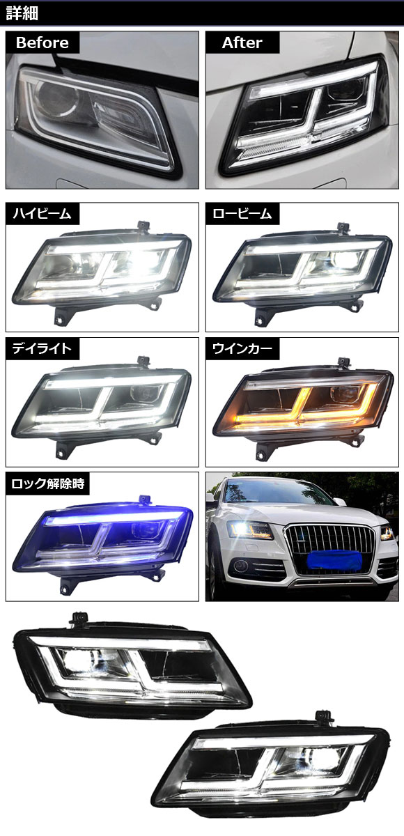 LEDヘッドライト アウディ Q5 8R系(8RCNCF/8RCDNF/8RCDNF) 2009年06月~2017年10月 左ハンドル用 入数:1セット(左右) AP-LL602