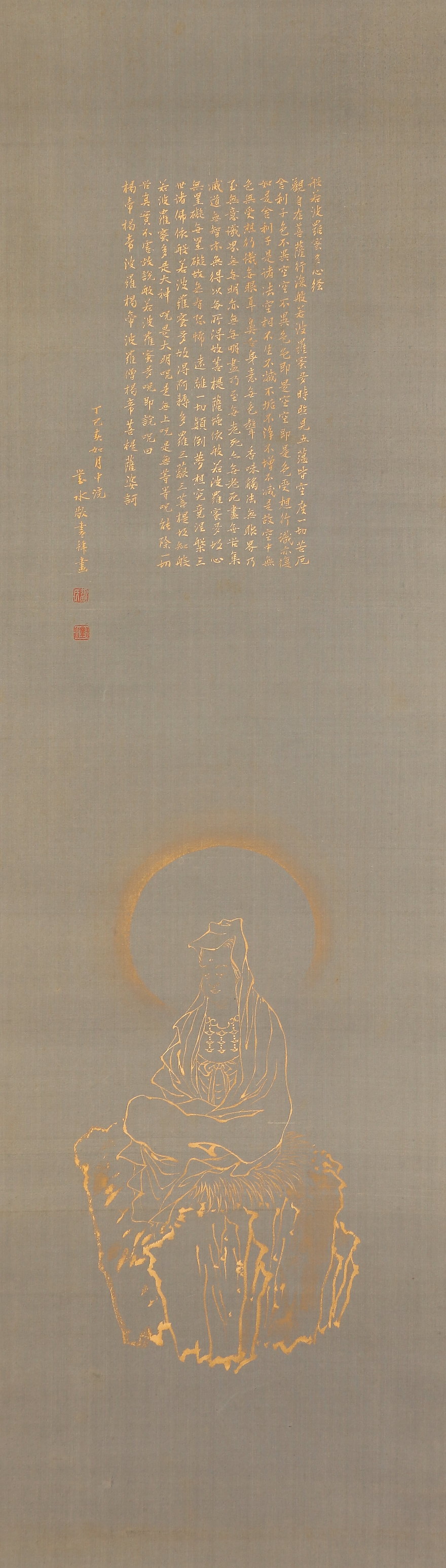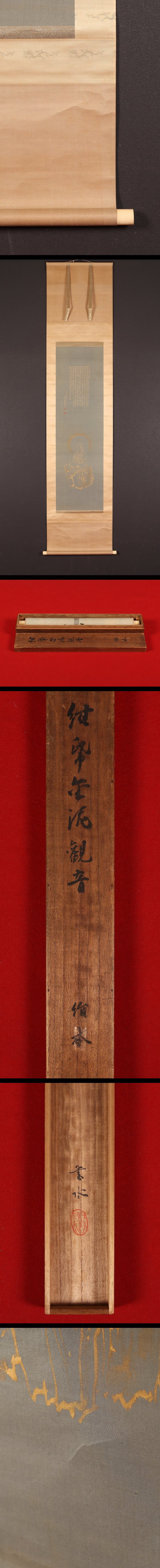 【真作】【伝来_弐】hp1358〈須磨対水〉仏画 白衣観音画賛 金泥絵 写経 般若心経 共箱 大阪の人 久保田桃水師事 中国