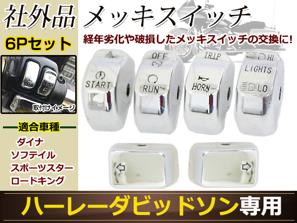 ハーレー メッキスイッチカバー 6ピースセット ダイナ ソフテイル XL ロードキング 制御スイッチボタンキャップ スイッチボタンカバー