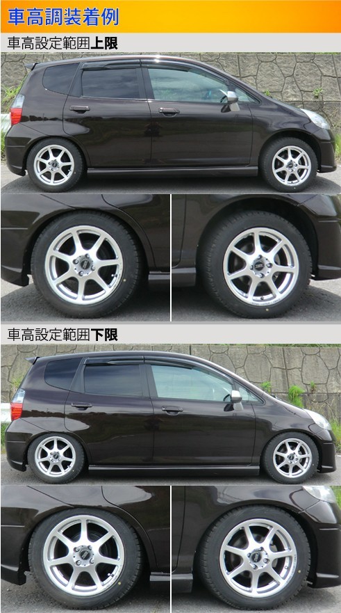 Original Japanese name: | フィット GD2 GD4 車高調 ラルグス 全長調整式車高調 スペックS Largus Spec S FIT 車高調整キット ローダウン |