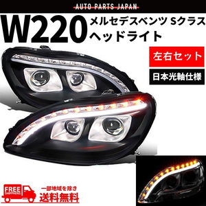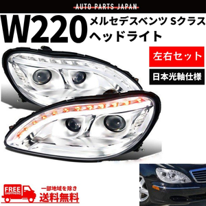 特注 日本光軸 メルセデス ベンツ Sクラス W220 98-05y クローム ファイバーLED プロジェクターフロント ヘッドライト 前期 送料無料
