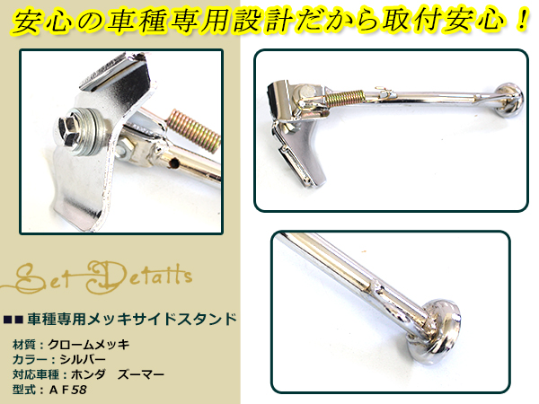 新品 ホンダ ズーマー AF58 サイド スタンド クローム/メッキ