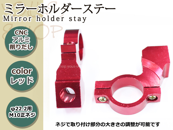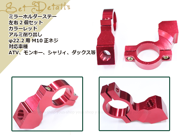 Original Japanese name: | メール便送料無料 ATV モンキー アルミ 22.2 正ネジ M10ミラー ホルダー ステー レッド ハンドルクランプ ミラークランプ メーターステー |
