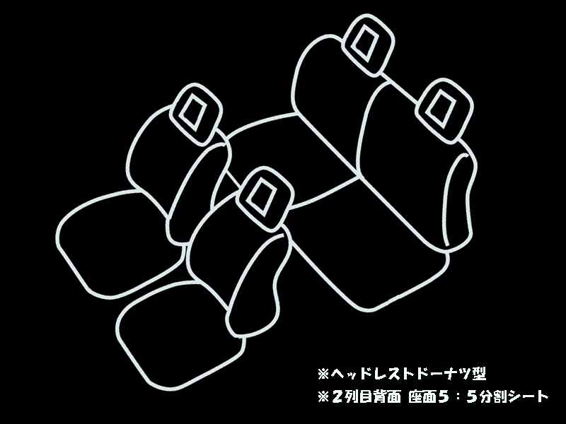 適合形状 | ヘッドレストドーナツ型 2列目背面座面5:5分割 ※ヘッドレスト枕型車はシート形状自体が異なるため不可 |