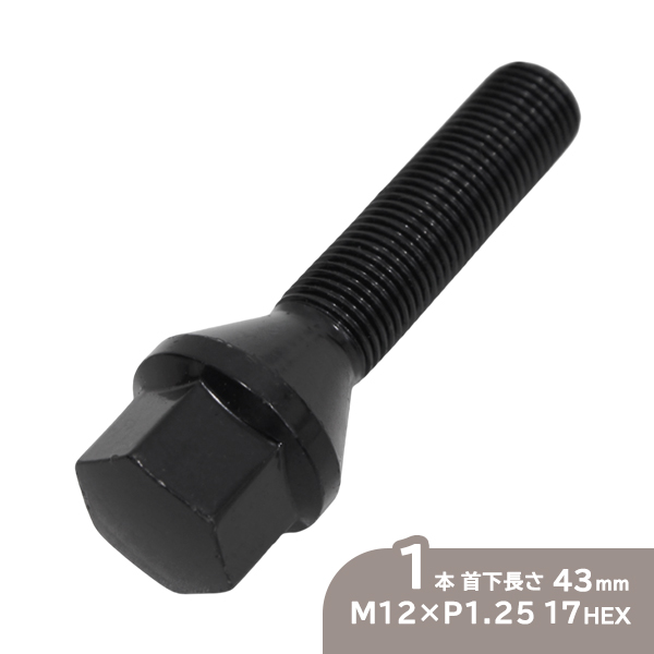 ю 【メール便】 ラグボルト [ M12×P1.25 17HEX 60度テーパー 首下:43mm ブラック ][ 1本 ] スチール製 ホイールボルト 輸入車