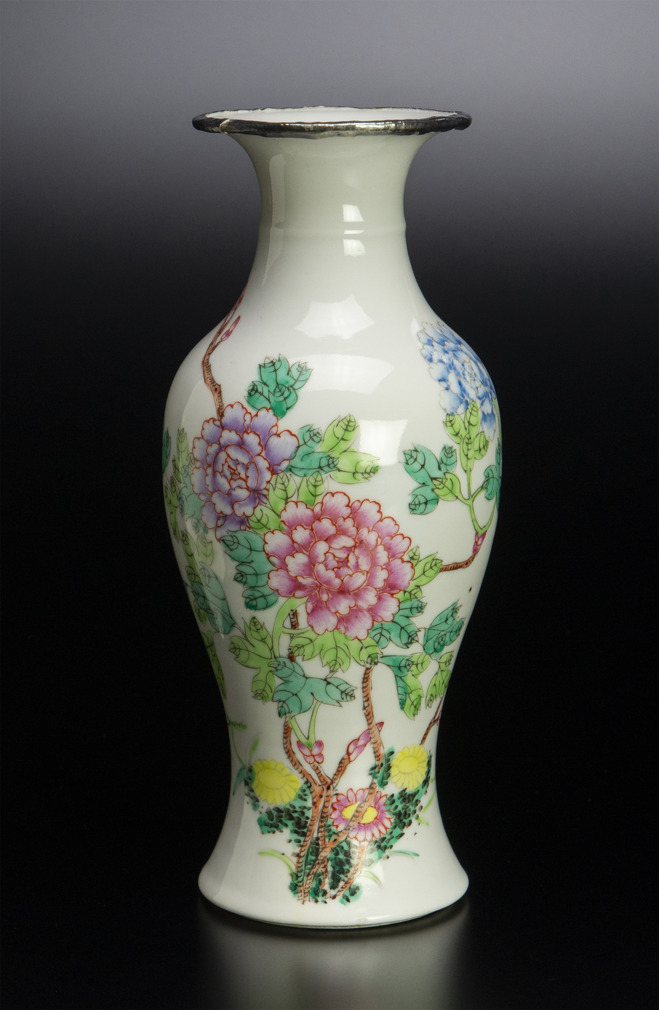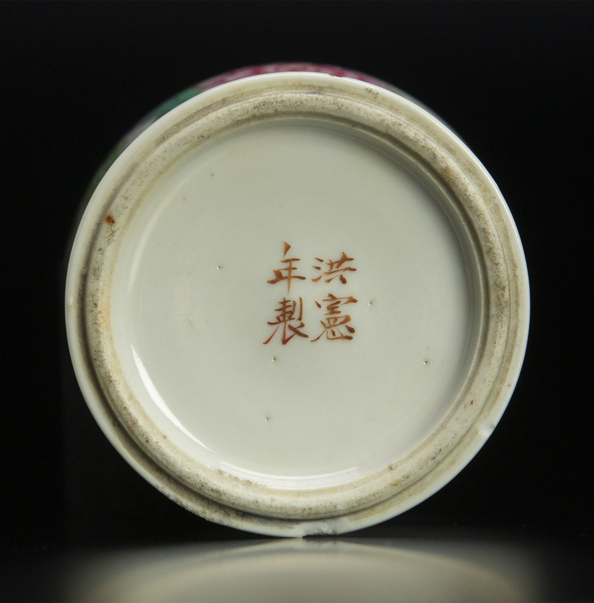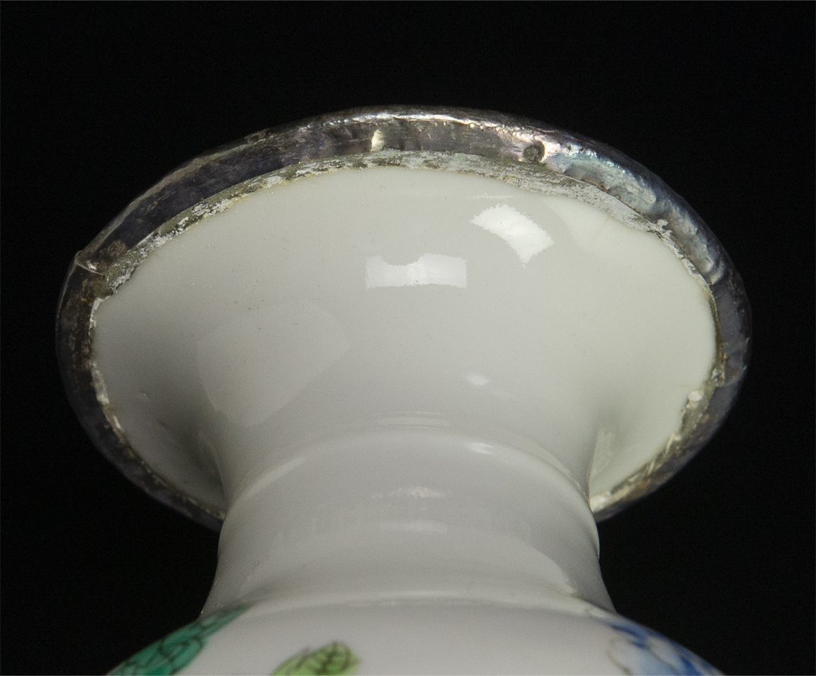 民国 包銀口粉彩花紋瓶 洪憲年制款 共箱 中国 古美術