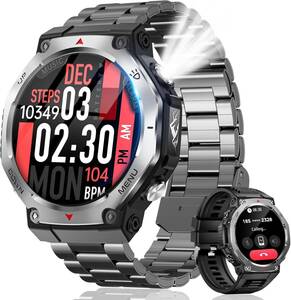 メタリックで高級感 スマートウォッチ【2025新登場 軍用規格】 Bluetooth通話 Line/メッセージ通知 1.43インチ Super AMO
