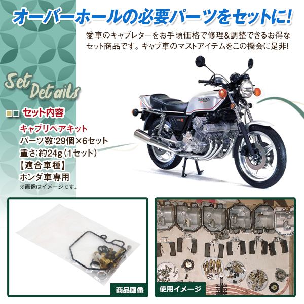 Original Japanese name: | CBX1000 キャブレターオーバーホールキット バブ キャブ リペアキット ガスケット バルブ リング等 レストア OH エンジン 補修 |