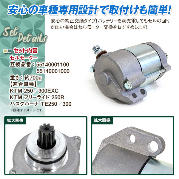 KTM 250 300EXC フリーライド 250R ハスクバーナ TE250 TE300 セルモーター スターターモーター 55140001100 55140001000