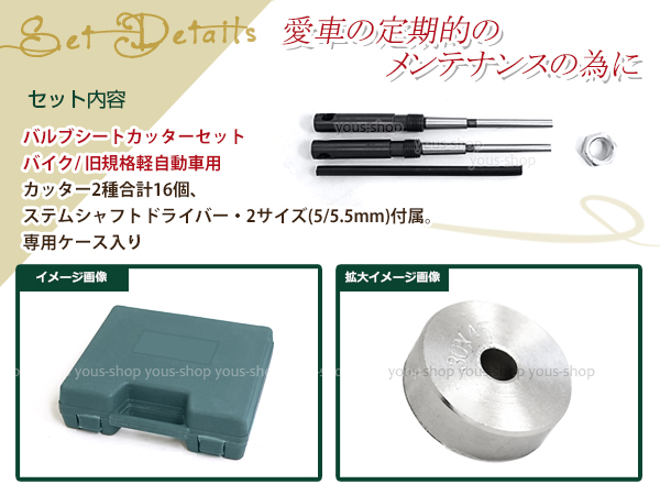 Original Japanese name: | バルブシートカッターセット 中~小型車 バイク 旧規格軽自動車用 550軽などの旧規格軽自動車用 バルブシート修正用カッターセット |
