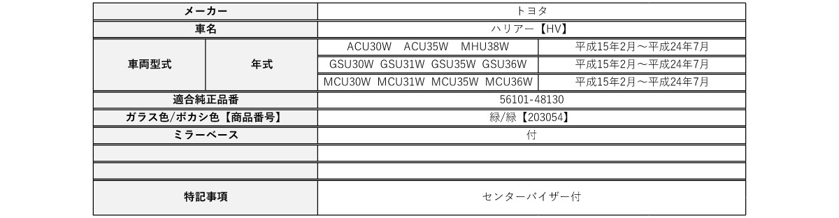 Original Japanese name: | 1◇新品◇UV&IRカット断熱フロントガラス◇トヨタ ハリアー ACU30W ACU35W MHU38W ボカシ緑 203054 |