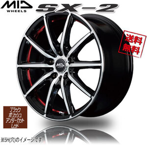 マルカ M.I.D SX-2 ブラックポリッシュ+アンダーカットレッドクリア 14インチ 4H100 4.5J+45 1本 67 業販4本購入で送料無