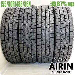 中古タイヤ 155/80r14 88/86N スタッドレスタイヤ ダンロップ ウィンターマックスエルティーLV01 4本セット プロボックス 中古 1