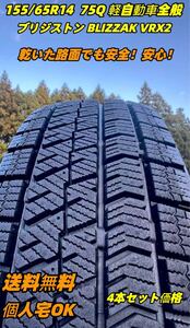 【バリ山美品 送料無料】★155/65R14 75Qブリジストン BLIZZAK VRX2 軽自動車用★倉庫保管21-23年製 4本セット価格 乾いた