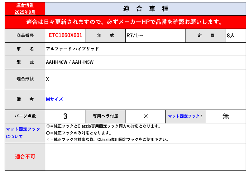 Original Japanese name: | [クラッツィオ]AAHH40W,AAHH45W アルファード ハイブリッド_8人乗(R7/1~)用カスタムラゲッジマット[ETC1660X601][Clazzio] |