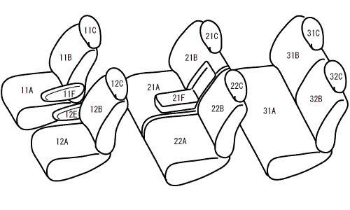 適合シート形状 | 2列目6:4分割タンブルシート / 2列目・3列目センターヘッドレスト無し車 |