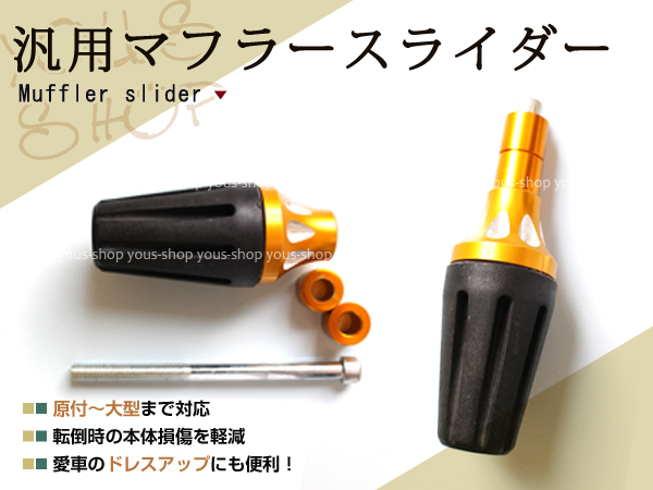 Original Japanese name: | 汎用 マフラースライダー エンジン フレーム スライダー 金 エンジン ガード 全長約155mm ボルト M8 カウル 転倒時の損傷を軽減 |